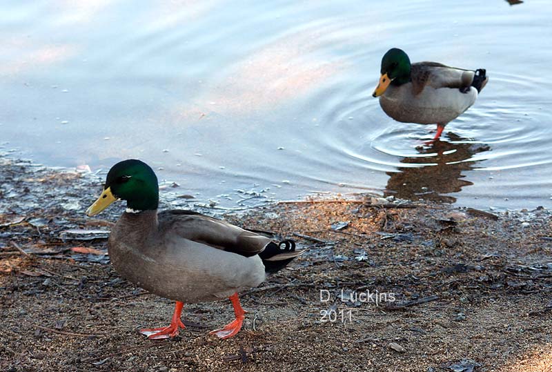 Not-Pepper (front) was there and he seemed to like Pepper, too and vice-versa. Pepper sorta followed him around. Not-Pepper showed up at the lake when he was almost three months old and looks a lot like Pepper. He was even that gray-black color like Pepper was before he got his drake colors.