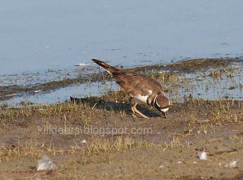I saw this juvenile killdeer in George's territory, but I don't think it's the same one I used to see there before because it has no spots on it like the last one and I think it's a male. He does look a lot like a fat George or Junior, though.